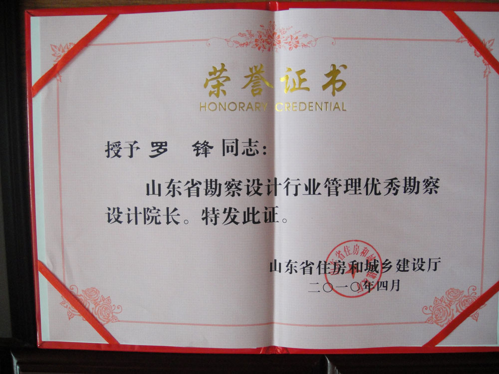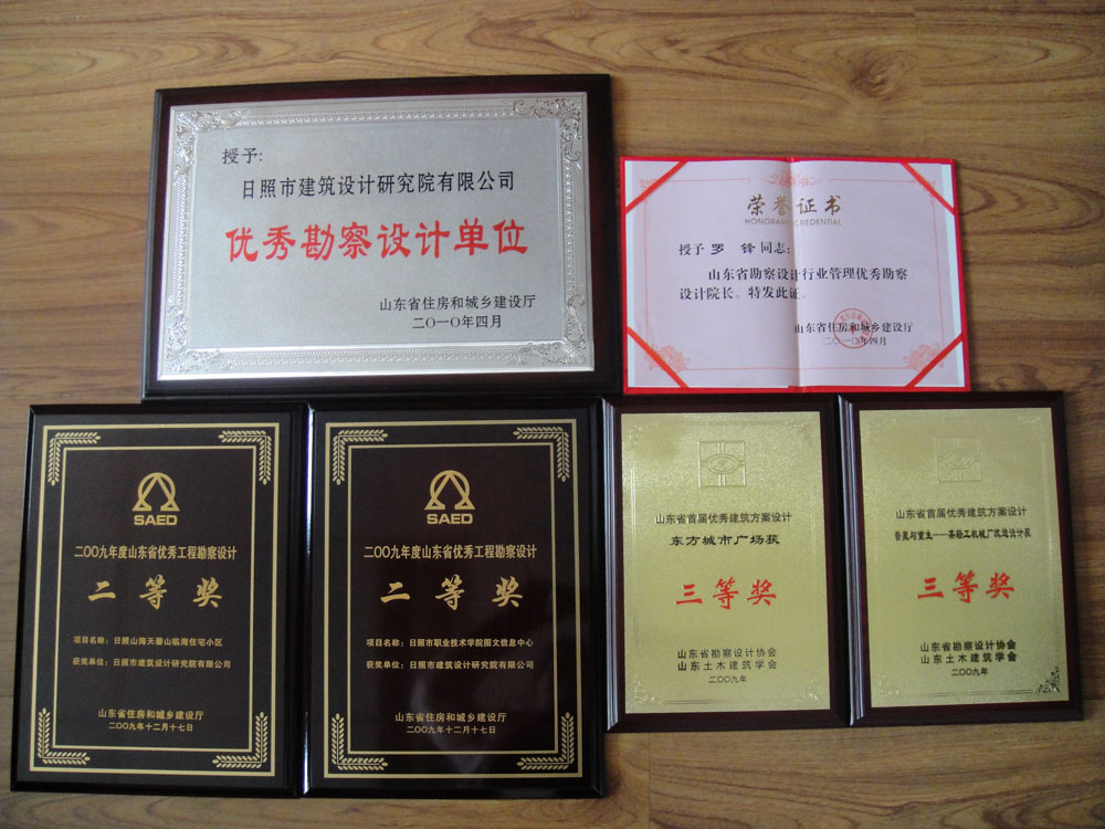 是山東省首批信用等級(jí)(AAA)單位,山東省勘察設(shè)計(jì)行業(yè)優(yōu)秀企業(yè),山東省十佳設(shè)計(jì)院,山東省工人先鋒號(hào),日照市市級(jí)文明單位,日照市重合同守信用單位,ISO9001質(zhì)量管理體系認(rèn)證企業(yè),國(guó)家級(jí)高新技術(shù)企業(yè)。
