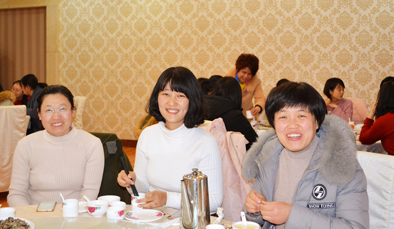 3月8日中午,忙碌了一個上午的女工們結(jié)伴而行,來到廣電大酒店。坐在一起的女士們總有說不完的話題。聊聊工作,談?wù)勆詈秃⒆?。我們的女員工們都露出輕松自在的笑容,其樂融融,仿佛一個和睦的大家庭。